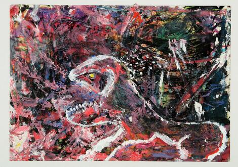 Gunnar Møller: Komposition. Sign. GM-79. Olie på papir. Bladstørrelse 42 x 59.