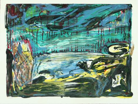 Gunnar Møller: Komposition. Sign. GM-90, 238/300. Litografi i farver. Bladstørrelse 53,5 x 71,5. Uindrammet.