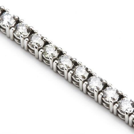 A diamond bracelet set with numerous brilliant-cut diamonds weighing a total of app. 6.45 ct., mounted in 18k white gold. H-J/P. L. app. 18 cm.