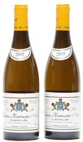 2 bts. Puligny Montrachet, 1. Cru "Clavoillon", Domaine Leflaive 2005 A (hf/in).