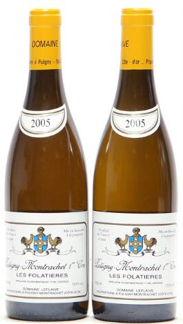 2 bts. Puligny Montrachet, 1. Cru "Les Folatieres", Domaine Leflaive 2005 A (hf/in).