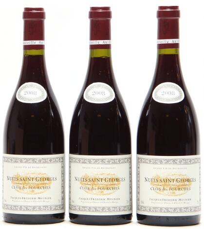 3 bts. Nuits Saint Georges "Clos des Fourches", Domaine J.F. Mugnier 2008 A (hf/in).