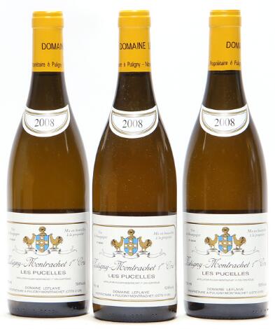 3 bts. Puligny Montrachet 1. Cru "Pucelles", Domaine Leflaive 2008 A (hf/in).