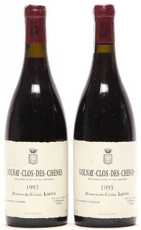 2 bts. Volnay 1. Cru "Clos-des-Chênes", Domaine des Comtes Lafon 1993 A (hf/in).