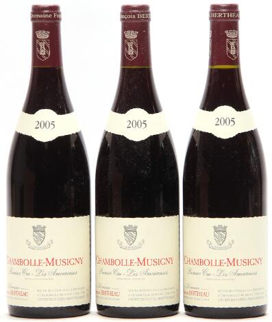 3 bts. Chambolle Musigny 1. Cru "Les Amoureuses", Domaine Bertheau 2005 A (hf/in).