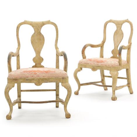 A pair of Swedish Baroque style painted armchairs. 19th century. (2)