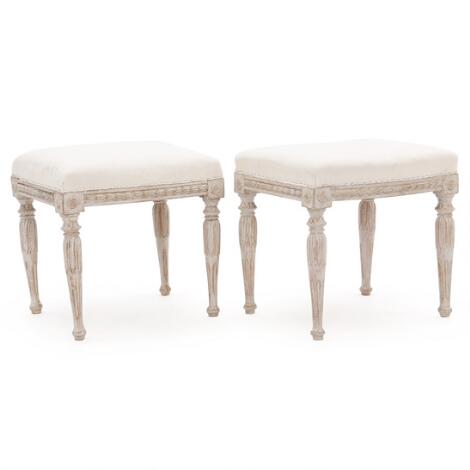 A pair of Gustavian painted stools. Unsigned. Sweden, late 18th century. H. 45 cm. W. 44 cm. D. 40 cm. (2)