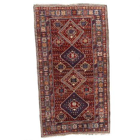 An antique Shirvan rug, Caucasus. Four liked hooked medallions. Early 20th century. 330 x 183 cm.