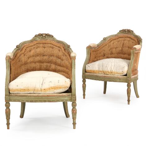 A pair of painted Gustavian style armchairs. Sweden, ca. 1900. (2).