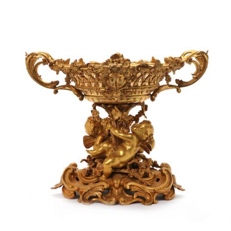 Stor fransk Napoleon III prydkande af forgyldt bronze, 19. årh. H. 45 cm.