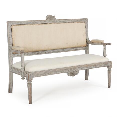 A painted Gustavian style settee. Lindome, Sweden, 19th century. L. 140 cm.