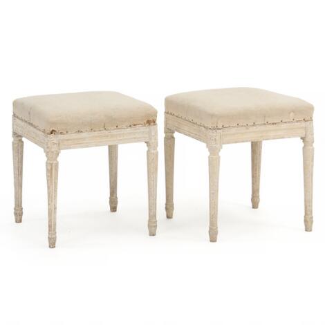 A pair of painted Gustavian stools. Sweden, ca. 1780. Seat height 45 cm. W. 38 cm. D. 38 cm. (2).