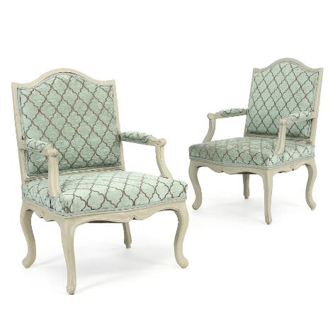 A pair of Rococo armchairs, later painted. Mid 18th century. (2)