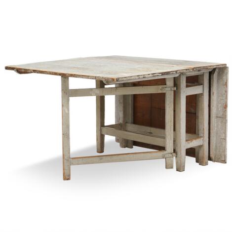 A Swedish drop-leaf table with the original coat of paint. Early 19th century. H. 75 cm. L. 36/176 cm. D. 115 cm.