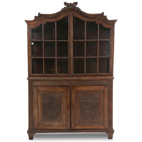 A large French oak vitrine cupboard. Late 18th century. 245 cm. W. 163 cm. W. 48 cm.