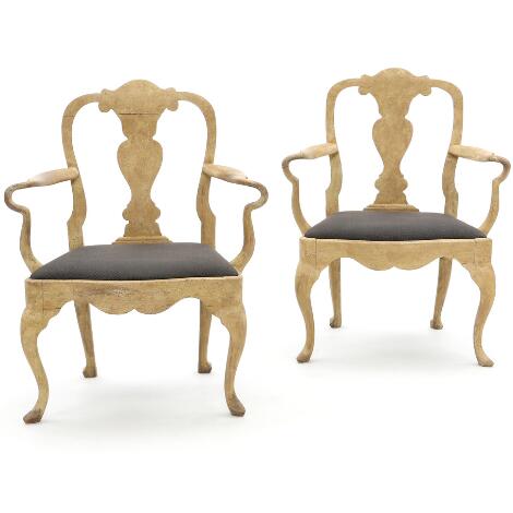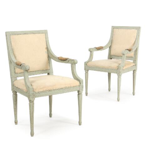 A pair of painted Gustavian armchairs. Sweden, ca. 1780. (2).