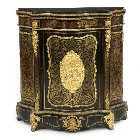 A Napoleon III Boulle-style cabinet with gilt-bronze mountings. Black marble top. France, late 19th century. H. 110 cm. W. 115 cm. D. 45 cm.