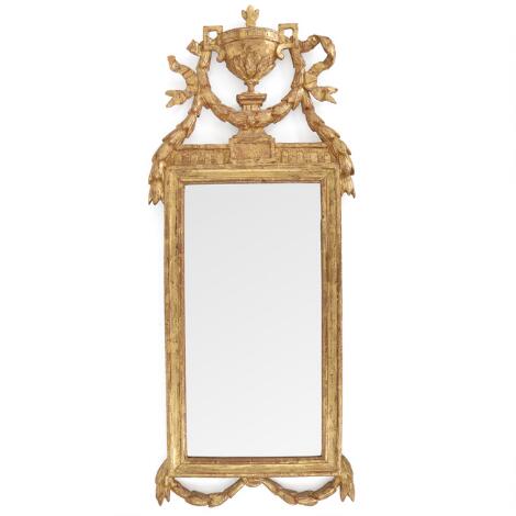 A small Danish Louis XVI gitlwood mirror. Ca. 1780. H. 117 cm. W. 47 cm.