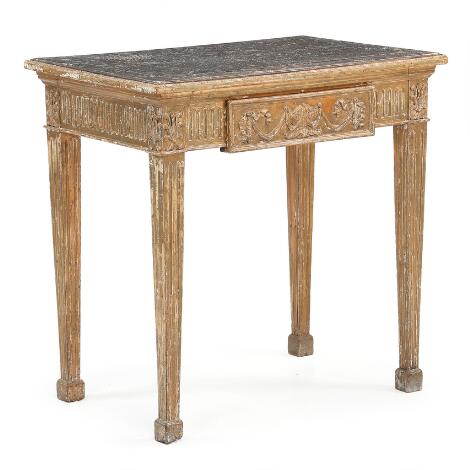 A Louis XVI freestanding giltwood console table. Late 18th century. H. 79 cm. L. 79 cm. W. 52 cm.