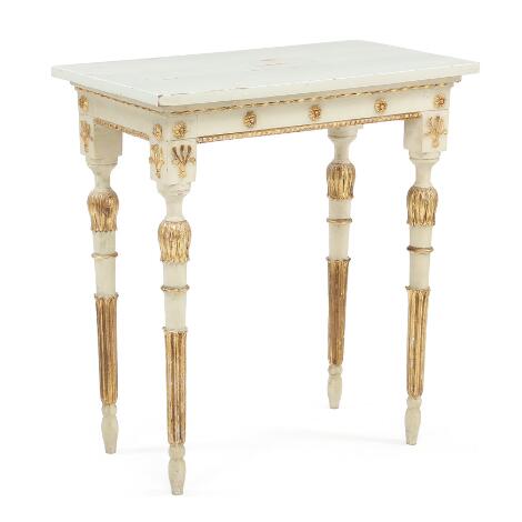 A Dansih Louis XVI painted and giltwood console with later top. In the style of J.C. Lillie. Late 18th century. H. 78 cm. W. 72 cm. D. 40 cm.