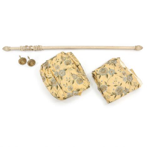 A pair of sillk curtains, rail and a pair of brass brackets. Of recent date. 138 x 313 cm. (5).