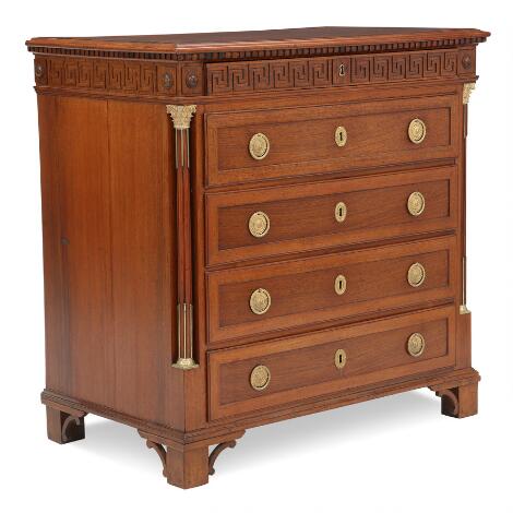 A Large Danish Louis XVI commode. Late 18th century. H. 100 cm. W. 97 cm. D. 58 cm.
