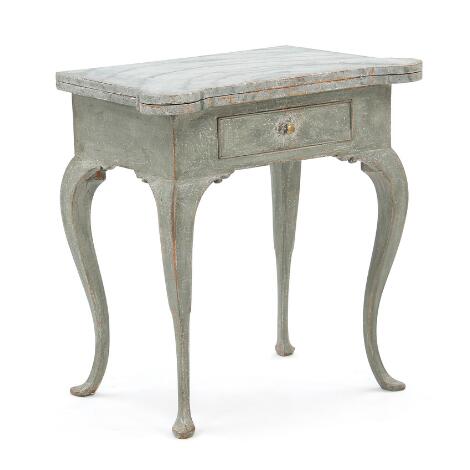 A painted Danish Rococo folding table with one drawer. Last half of the 18th century. H. 74 cm. W. 73 cm. D. 46/92 cm.