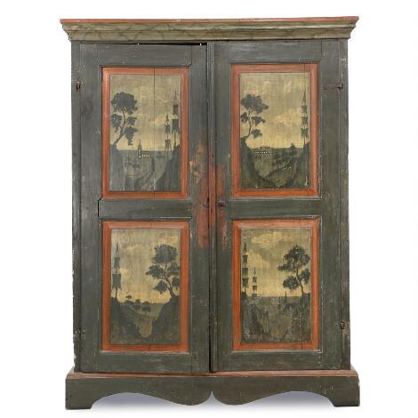A Swedish rural painted cupboard. Second half of the 18th century. H. 187 cm. W. 143 cm. D. 51 cm.
