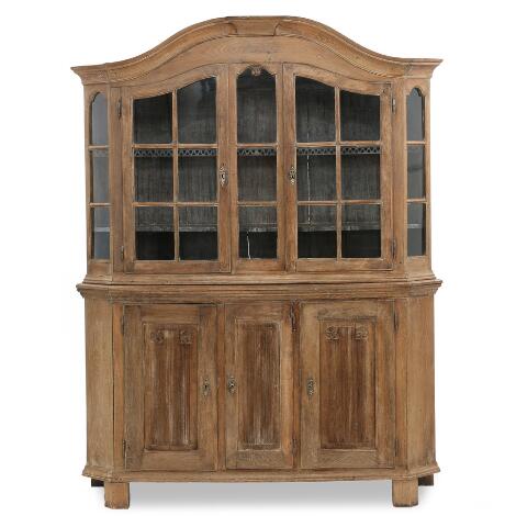 A Danish Rococo oakwood display cabinet with two sash doors and three panelled doors. Province of Southern Jutland. Mid 18th century. H. 230. W. 170. D. 48.