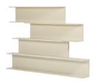Four white lacquered wooden shelves for wall mounting. Manufactured by Wilhelm Renz. 1960s. H. 26.5. W. 100/150. D. 19 cm. (4)