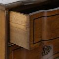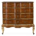 A Frisian rococo chest of drawers of gilwood and elm wood inlaid with dark wood in the form of moldings and stars, later legs. Ca. 1760. H. 130 cm. W. 127 cm. D. 62 cm.