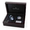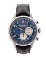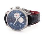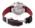 Capeland “Shelby Cobra Edition” in steel, ref. 10232. Mechanical chronograph movement with automatic winding and date display. 2015. Black alligator-embossed leather strap with a steel folding clasp. Ø 44 mm.