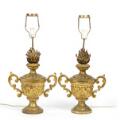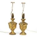 A pair of Italian gilt wood vases. Electric installed. Early 20th century. H. 60 cm. (2)