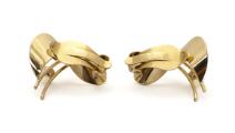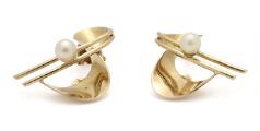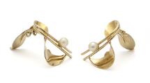 Et par perleøreclips af 14 kt. guld hver prydet med kulturperle. Samlet vægt ca. 3 g. Perlediam. ca. 3 mm. L. 20 mm (2)