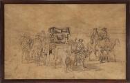 Scene from Don Quixote. Unsigned. Drawing ink and wash on paper. Visible size 73×117 cm.