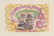 Uden titel. Sign. NE Gjerdevik 85. Akvarel og gouache på papir. Bladstørrelse 13×20.