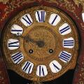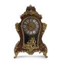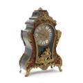 Fransk Napoleon III bordur indlagt med messing og skildpaddeskjold i boule maner, montering af forgyldt bronze, skive med plaketter af hvid emajle. Værk stemplet 'F. Alard a Paris'. 19. årh.s slutning. H. 43. B. 27. D. 14.
