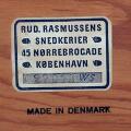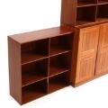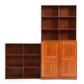Reolvæg af mahogni bestående af et skab med tilhørende sokkel samt et par bogkasser. Udført hos Rud. Rasmussens snedkerier, med etiket herfra. Bogkasser: H./B. 76. D. 27,5. Skab: H./B. 76. D. 36. Sokkel: H. 5. L. 76. D. 36. (4)