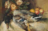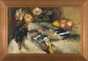 Still life with a duck. Signed Vantore. Oil on canvas. 47×72 cm.