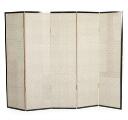 Kinesisk femfløjet skærm, malt på papir med traner og blomstrende kirsebærtræ. 20. årh. Hvert panel 155×40 cm.