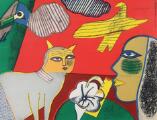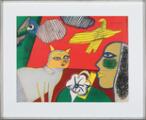 Woman and cat. Signed Corneille, 84, 5/125. Lithograph in colours. Visible size 49×64 cm.