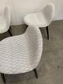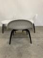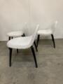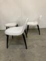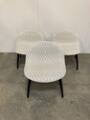 Three “3D Lounge Chairs” upholstered with patterned favric, legs of black lacquered wood. Manufactured by Gubi. H. 70. W. 65 cm.