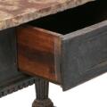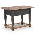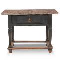 A Swedish stone top table, the top of Öland limestone, lower part of black painted wood, front with one drawer. 19th century. H. 80 cm. W. 109 cm. D. 66 cm.