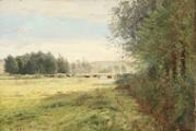 Grazing cows on a field near Søllerød, Zealand. Signed and dated A. Thiele 1893. Oil on canvas. 47×71 cm.
