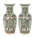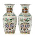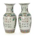 Et par kinesiske vaser af porcelæn, balusterformede, dekorerede i emaljefarver med kostelige ting og kalligrafi. Sen Qing/Republik. H. 44 cm. (2)