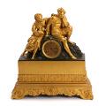 Fransk konsolur af patineret og forgyldt bronze, urhus dekoreret med fiskerfamilie. 19. årh. H. 47.