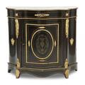 Napoleon III skab af ibenholtsfineret træ, med lister af messing og ornamenter af forgyldt bronze. Plade af marmor. Frankrig, ca. 1870. H. 107. B. 114. D. 44.