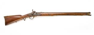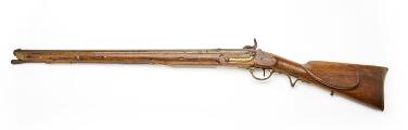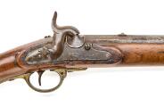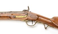 Sjælden uændret dansk M/1853 ex Slesvig-Holstensk Lüttcher riffel med hul efter diopter på kolbehalsen, lås uden sikring mærket Pirlot Frères a Liege, ca. 76,5 cm. lang pibe i kaliber ca. 16,5 mm. med standviseer. Alle hoveddele inkl. ladestokken mærket 191. (1)