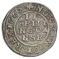 Frederik III, 2 skilling 1667, H 134B, Sieg 20.3, Aagaard 64, korroded - extremely rare date