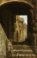 In between his major exhibition pieces, Krøyer also found time to produce a number of small oil sketches, serving as snapshots of the place and everyday life in Sora. Among them is the present work, depicting a narrow, shadowy alley in the town, where Krøyer explores the contrasts between light and shade within the characteristic architecture of the Italian village — and in the transition between interior and exterior space.